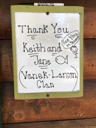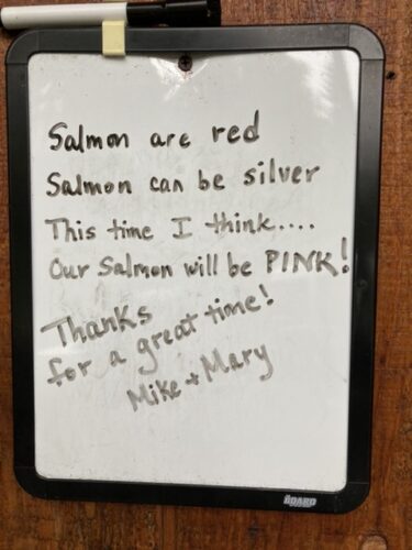 Is it a white board, or is it a wipe board? The board is white, and you do wipe it, so what the heck is it called then? Feel free to weigh in on the debate in the comment section of Facebook. Every season, Jane and I are fortunate to have guests leave us notes on the cabin white/wipe boards. It’s been a …