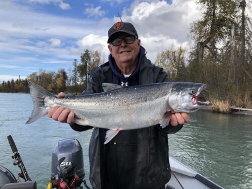 Looking back at the month of August, it rained 26 out of 31 days. Not only did we fish in a river, we also sat in an atmospheric river. Water, water, everywhere. Not a lot of fun. But, the silver lining (did you see what I did there?) was the fishing. It was very good to excellent for silver salmon. Plenty of action …