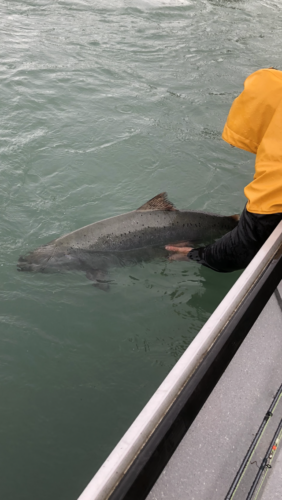 I’ll begrudgingly give my neighbor Greg, a former river guide, some credit for this king salmon. I stopped by to see him and on his desk was a pile of leaders he had tied up. He gave me one and said “take this one, it’ll catch a fish.” It not only caught a fish, it caught the first fish on the first troll of the morning. You still have “it” Greg…