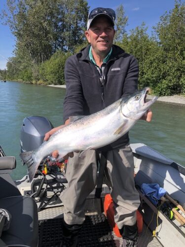 It’s been a struggle to find good numbers of salmon all week. Rising and dirty water doesn’t help either.
