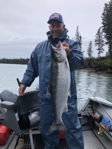Frank proudly holding a nice early season silver salmon.