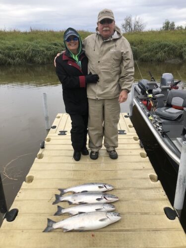 Cindy and Steve with a couple of hard earned silvers along with a couple of pink salmon.
