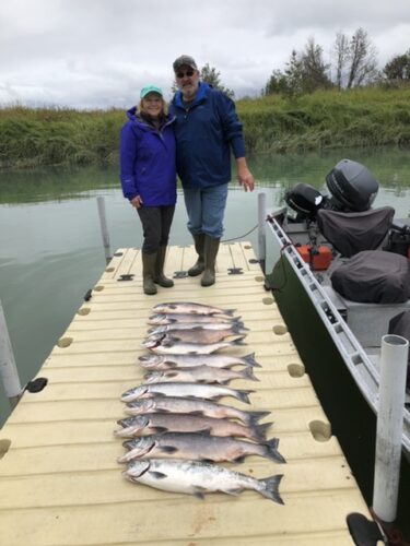 As I was cleaning fish/boat from the morning trip, Mike and Mary showed up with their limit of red salmon. The two of them have been Alaska regulars. Jane and I are happy to see them again.
