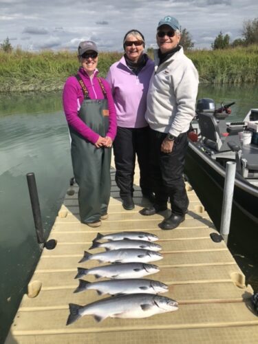 Like Ed and Rick earlier in the week, Team Matthews saltwater trip was cancelled because of weather. They were looking for another fishing opportunity somewhere. Since Kathy, Renee, and Jen limited out so quickly in the morning, I was available to get them out on the river that afternoon. I know they were disappointed that they were unable to get out on the ocean, but the Kenai River became a nice backup plan.