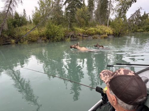 I’ll end with this photo. The last morning of silver fishing a momma moose and her calf gave us quite a show. They were were literally a rod tip away. Moose on!!!