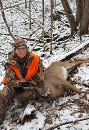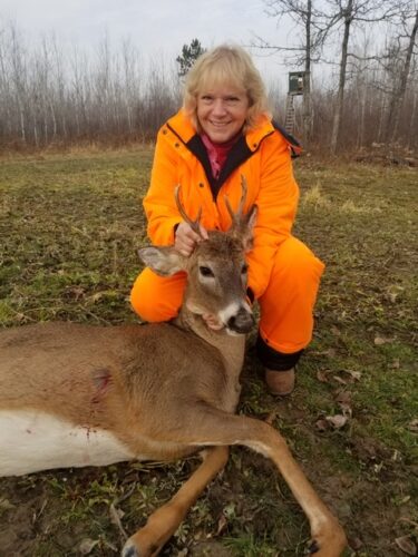 Here’s One Shot Mary. Not only did she take up deer hunting at the young age of 61, she got this 5 point buck on the opening morning of the season with one shot! Congratulations on many levels.