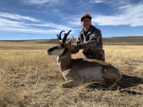 The banner photo is Libby with a beautiful white tail deer. Above, is her mom, Kris, with a pronghorn.
