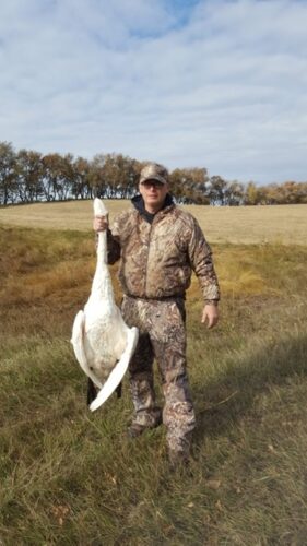 Not sure why I didn’t get a deer photo from Dick (the hunting season isn’t over yet), but I did get one of him with a North Dakota tundra swan.