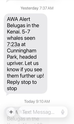 If you’re interested, the number to receive Beluga Watch text alerts is (833) 541-0408. To learn more about the organization, the link can be found here.