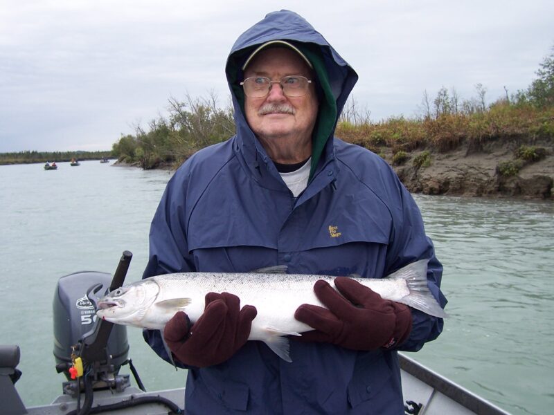 September was the month that Bob and Judy would come to Alaska. I was always impressed with their “can-do” attitude no matter how miserable the weather would be. I’d often remind Bob that he left 85 degrees in Oklahoma to be in a cold, wet boat on the Kenai trying to catch silver salmon. He would tell me, “as long as my health holds out, this is where I want to be.”