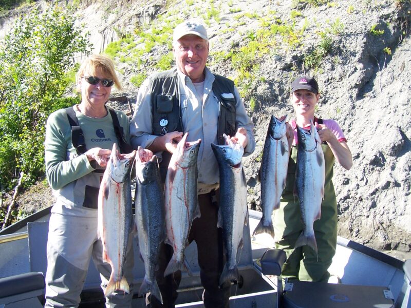 Even though it was only three hours on the water, we hooked and landed 17 king salmon. The fishing was so good we actually had a triple. The photo above are the two fish that Dave and Jane ended their morning on. Truly an epic day on the World Famous Kenai River…