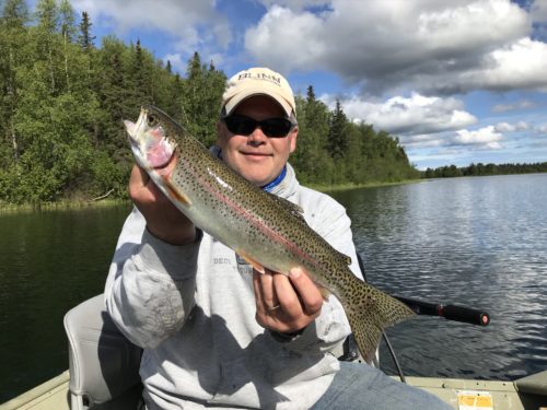 Spirit Lake is stocked with rainbow trout, Arctic char, and landlocked silver salmon. Since it’s a “put and take” fishery, the limits are very generous. On this day, Jane and I kept enough trout for a meal.
