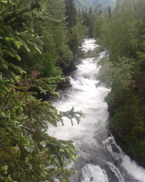 My three days of solitude were interrupted Friday afternoon when Jane, Beau, Lacey, and Jake joined me at the Russian River. We fished for a short period of time, saw little action, and then went back to the campsite to visit and have dinner. It was around the campfire that the boys and I decided we’d get up early the next morning and beat the crowd. It looked promising from the start. From 3:45am to just after 4am we saw 50-75 red salmon swim by. I was excited because that was more fish than I’d seen in the previous three days combined. Unfortunately, only one of us was able to hook and land a salmon. Congrats Jake, for catching your first Alaska salmon and for a job well done.
