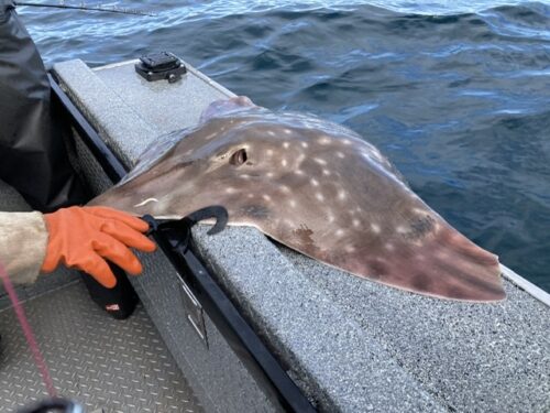 Here’s a non targeted species being released. Skates are fairly common in Cook Inlet. They’re terrific fighters, but not the best table fare.