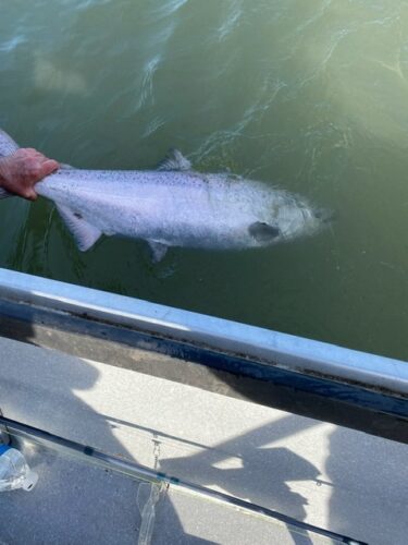 Not too long into the morning, Larry expertly reeled in the first king salmon of the year. It measured 38” and was quickly released. Although it didn’t beat his personal best, it was a great first fish to open the season.