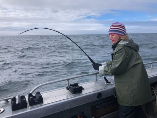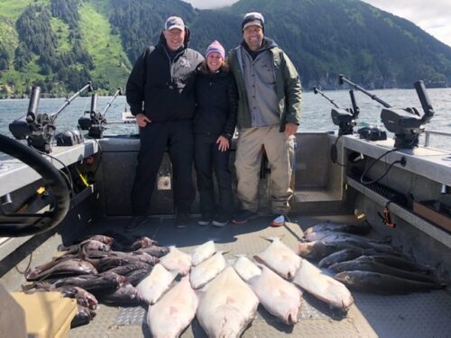 Since that was it for fishing on the Kenai for me, the rest of my fishing report will be about the saltwater fishing that Kim, Shana, Todd and Mandy did in Homer. They fished with my friend Mike Wheat of Mike’s Hooked For Life Guide Service. Other than the sea being a bit lumpy (I feel for you Mandy because I don’t do well in rough seas either), the fishing was excellent.
