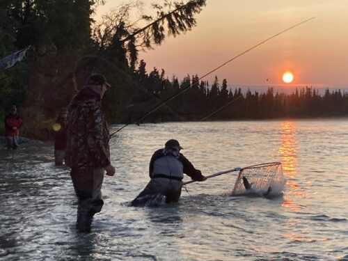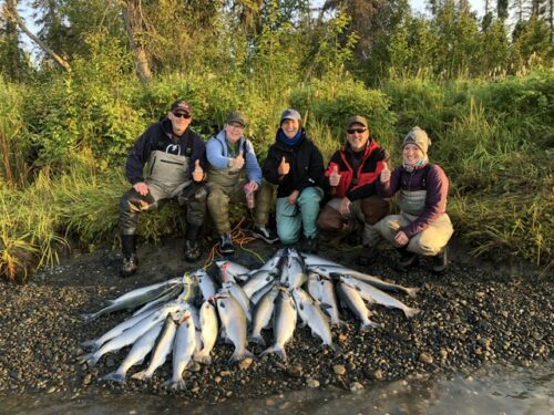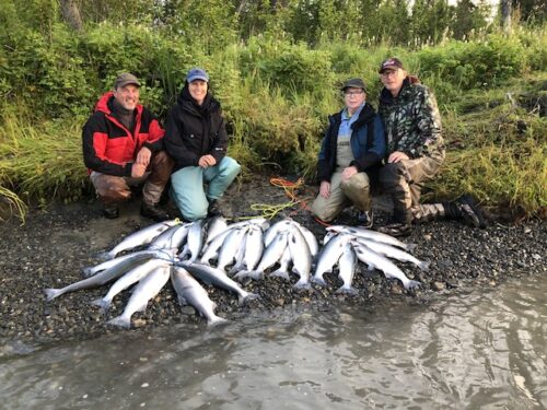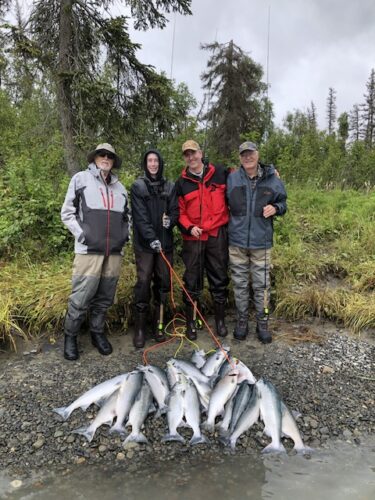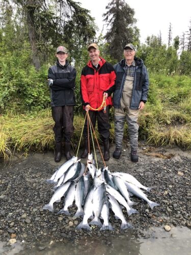 The fishing week ended with Team Chesney once again and a bonus angler. Long time readers may recognize the man on the left as Gary Blinn. He normally spends the month of August with us on the even years. He couldn’t wait that long and came up this year to get in on the red salmon action. Another great morning with a bunch of great guys.