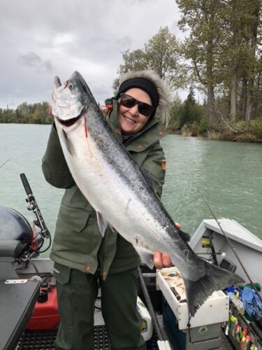 What the heck happened on Friday? Fished all day and saw a total of three fish caught. Leslie was one of the lucky ones who caught this silver at quitting time. Even though it was a slow day of fishing, it was enjoyable to be on the water with Paul, Mia, and Jane.
