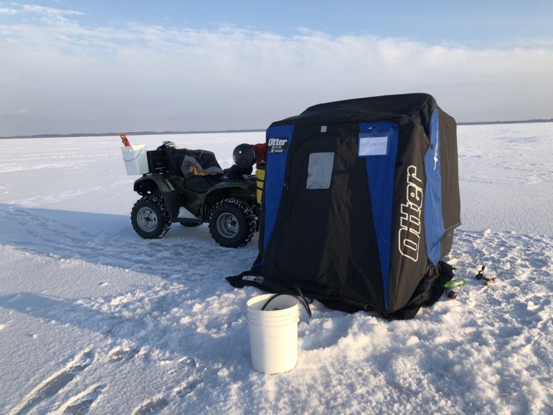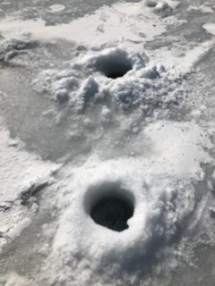 And, keeping with CDC guidelines and social distancing, I’ve been drilling fish holes six feet apart. I haven’t had anybody want to fish close to me yet, but I am prepared if they do.