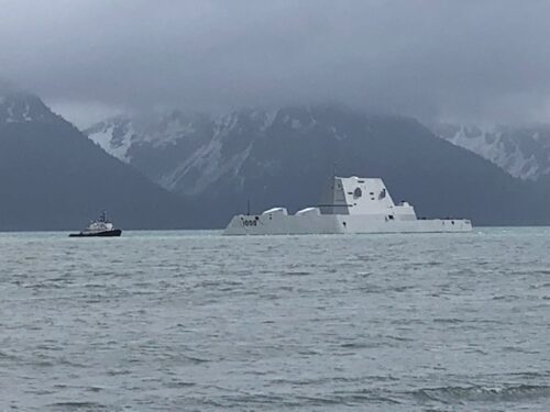 Not related to the Mermaid Festival, this ship pulled into the Seward harbor Saturday afternoon. I knew it was military, but I had no idea what it was. Fortunately, I knew one guy who would know and that would be Ron. I texted him the photo and he said it’s the USS Zumwalt Stealth Destroyer, a guided missile destroyer of the United States Navy. It came into Seward to refuel. The timing couldn’t have been better considering Saturday was Armed Forces Day (thank you to all that served and are currently serving).