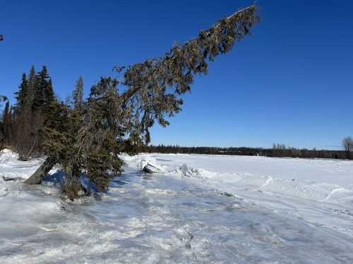 Before I end this weather report, I’d like to thank Mack for the use of his photos. He, along with Rusty, were snowshoeing on the opposite side of the creek (the island). I appreciate seeing our property from a different perspective.