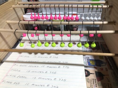 I eventually found what I needed but the jigs were not painted. No problem. Pro-Tec Powder Paint is specifically designed for jig heads. Cerise, chartreuse, and white are the core colors that get the attention of a salmon.