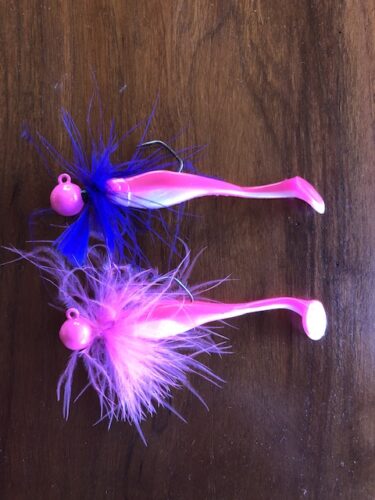 Besides the standard marabou, flashabou, and rabbit hair, I like to add plastic paddle tails to a jig. Not only does it enhance the action and give the lure more color, it slows down the rate at which a jig will drop in the water. A slower, falling jig can often be a difference maker. If you’re wondering why you don’t see Gulp or Power Bait (both are excellent) it’s because they’re infused with scent and scent is considered bait in Alaska.