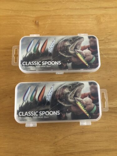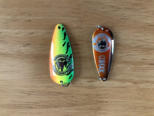 I wasn’t expecting this. When I opened the tackle boxes I found custom spoons with our logo and cabin names on them.